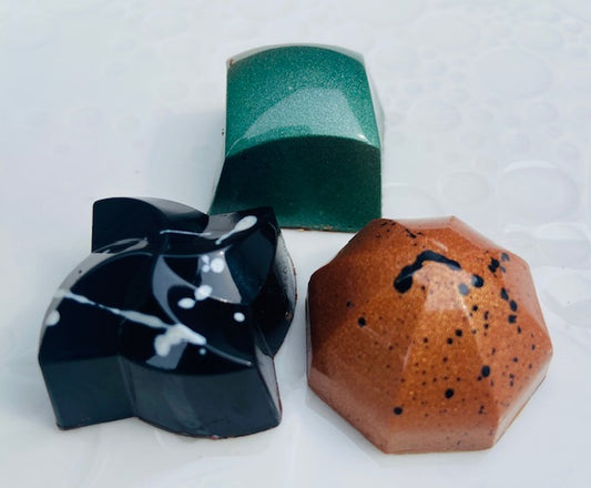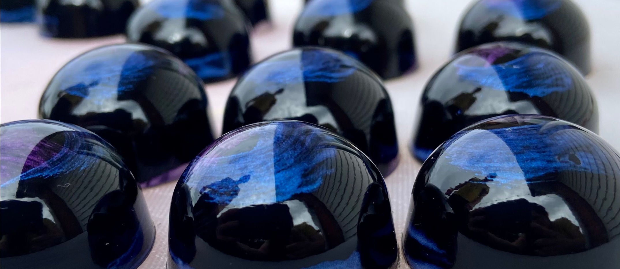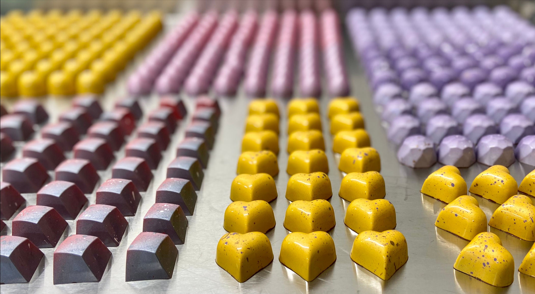 Hver en chokolade er et resultat af mange timers tanker. Det er alt lige fra farvekombinationer, dekoreringsteknikker, konsistens og smage. Alle elementer skal finde den rette harmoni og balance, før det bliver et stykke chokoladelykke.
