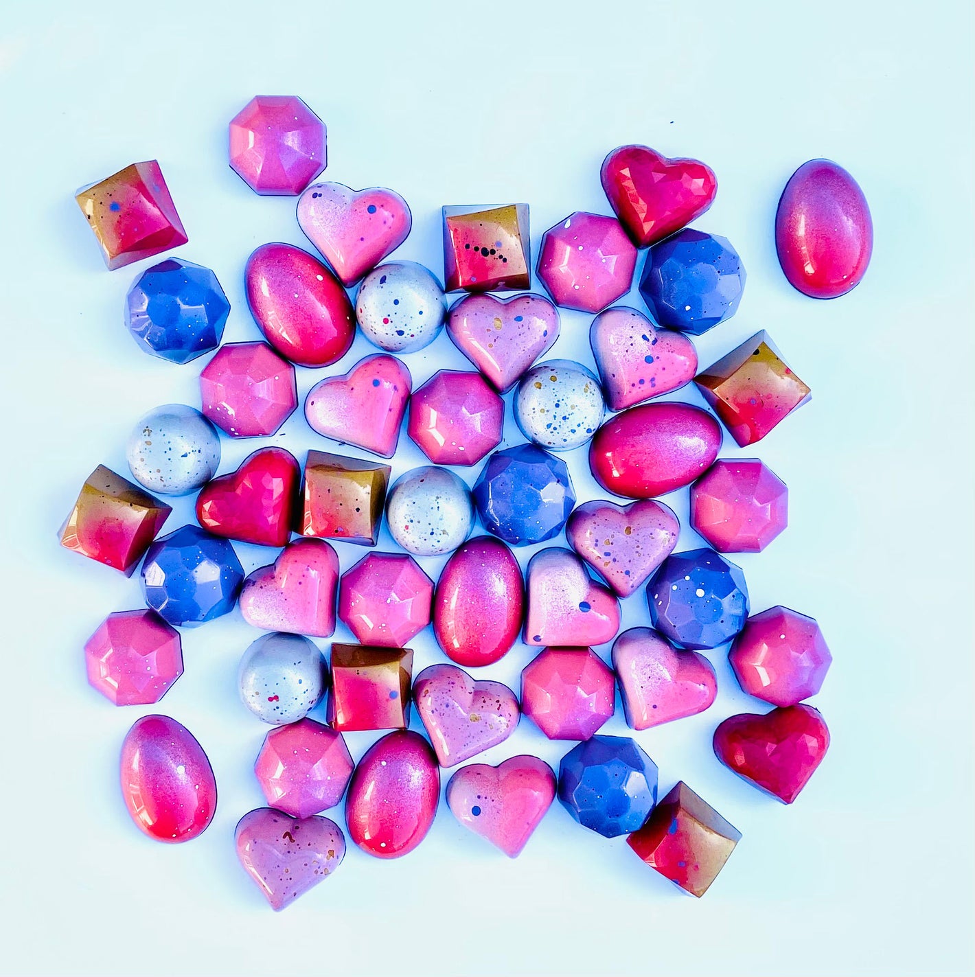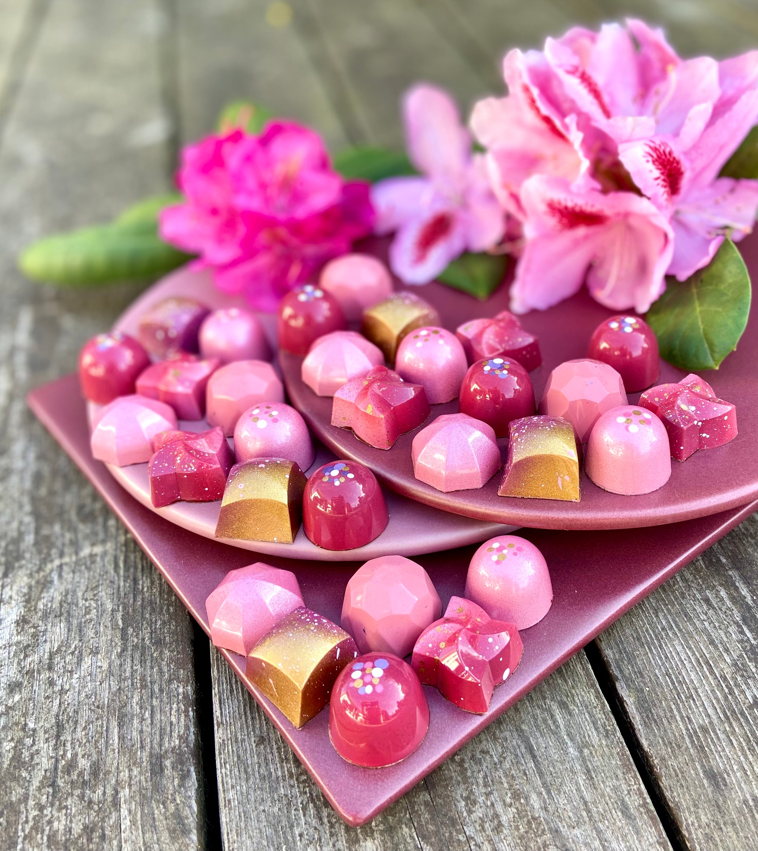 I mit lille chokoladeværksted får kreativiteten og glæden frit løb. Dagens humør og lyst styrer smage, former og farver.
